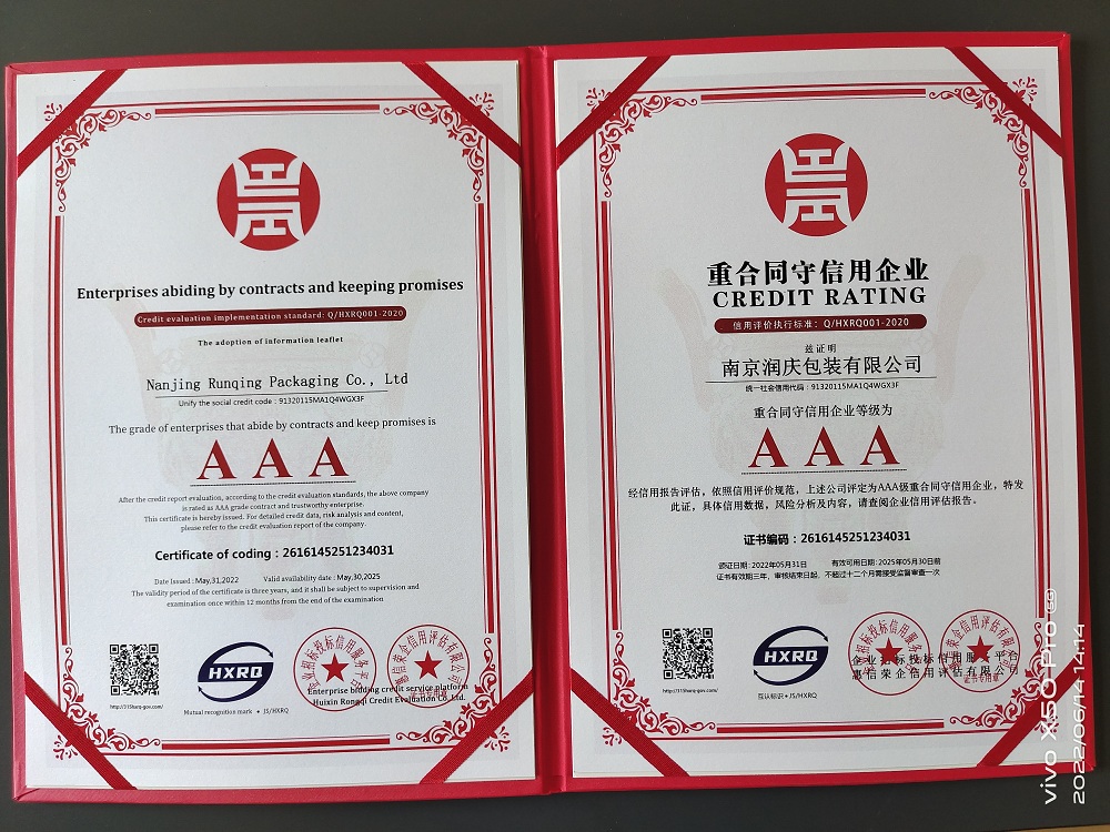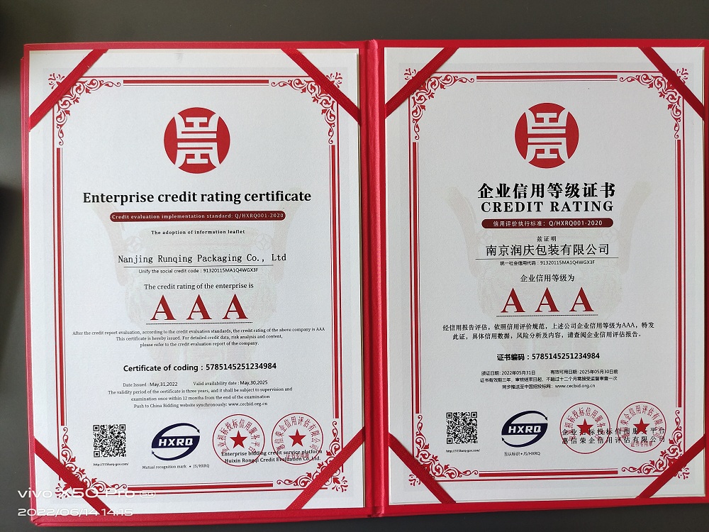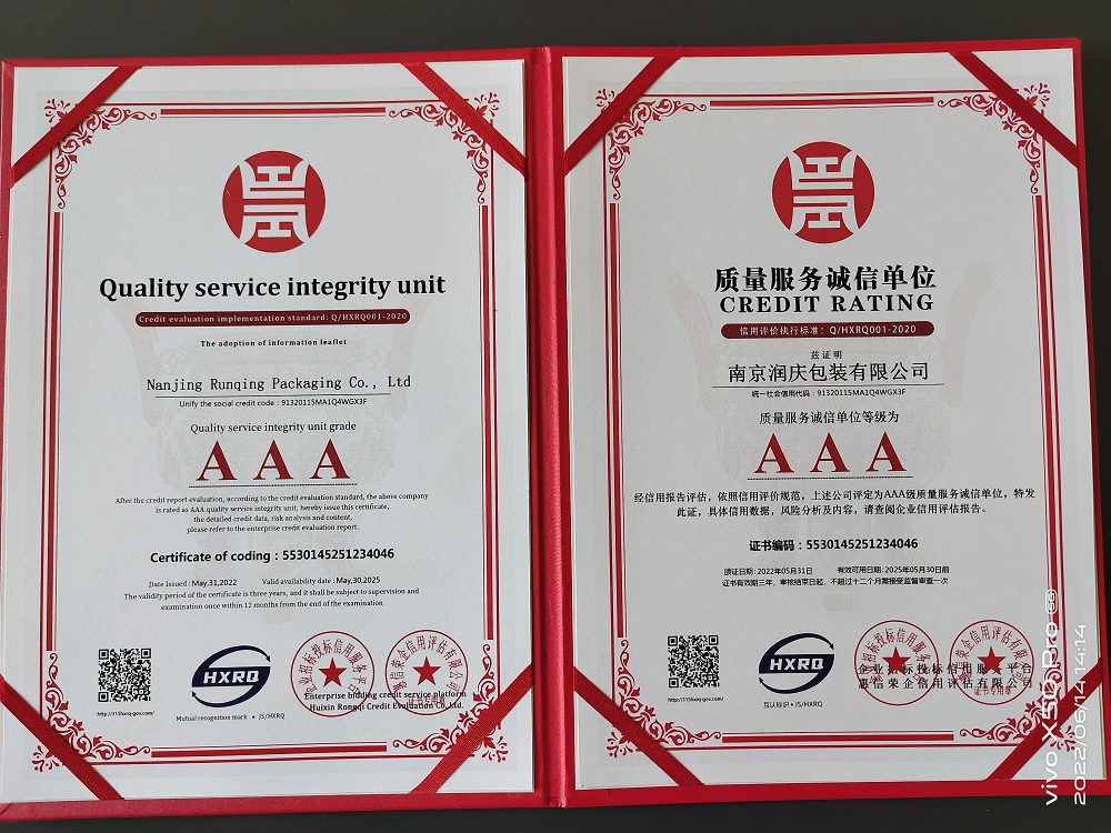 “誠信爲本、客(kè)戶至上,服務周(zhōu)到,質量第一,創(chuang)新緻遠”我們銘(míng)記企業的生存(cun)之道,對産品的(de)質量嚴厲要求(qiu),對客戶的服務(wù)永無止境,争做(zuò)南京紙制品行(háng)業的佼佼者!!!!